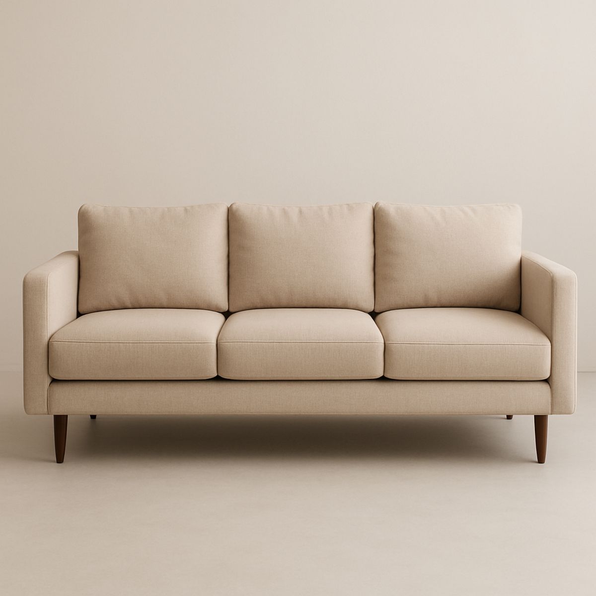 Sofá 3 Lugares Linho Bege com Pés em Madeira 220x90x80cm